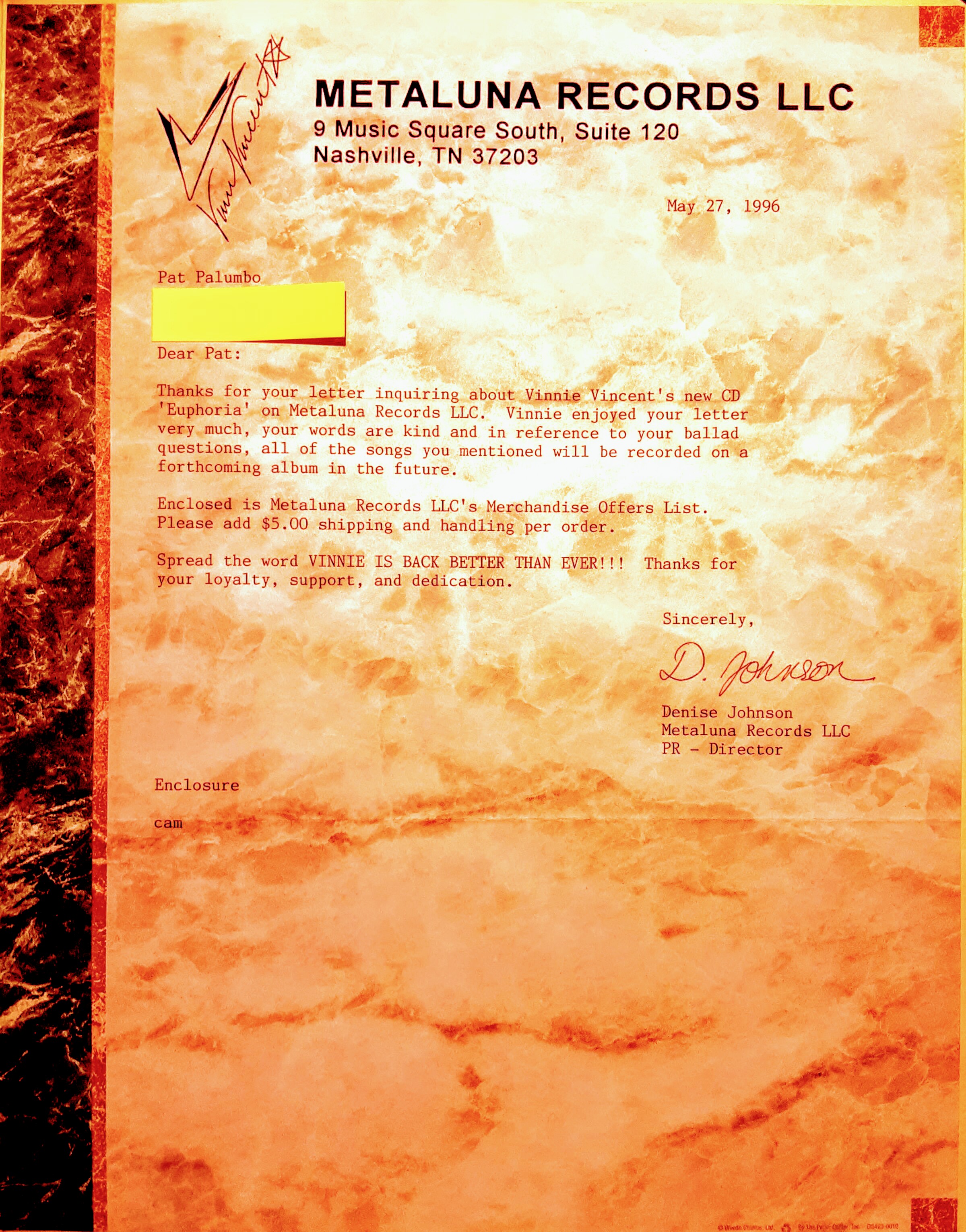 - Topic: Letters from Metaluna Records / merchandice order form 1996