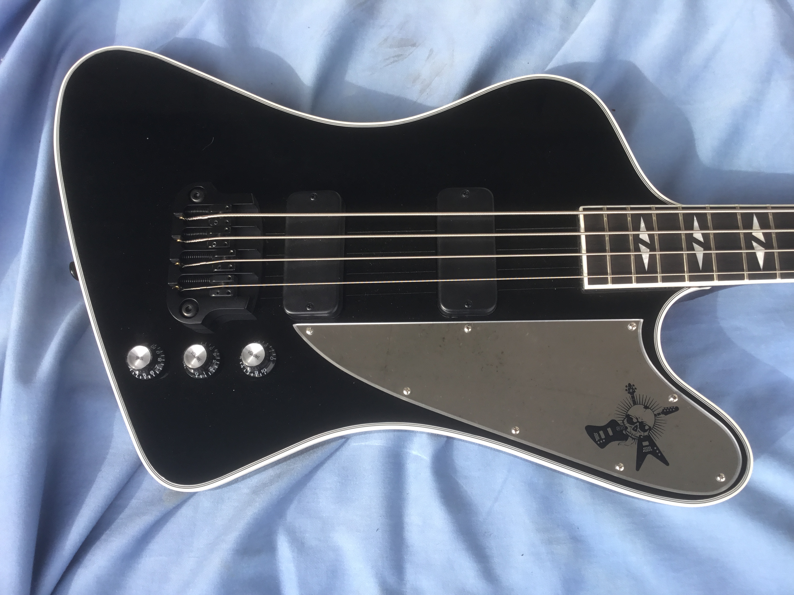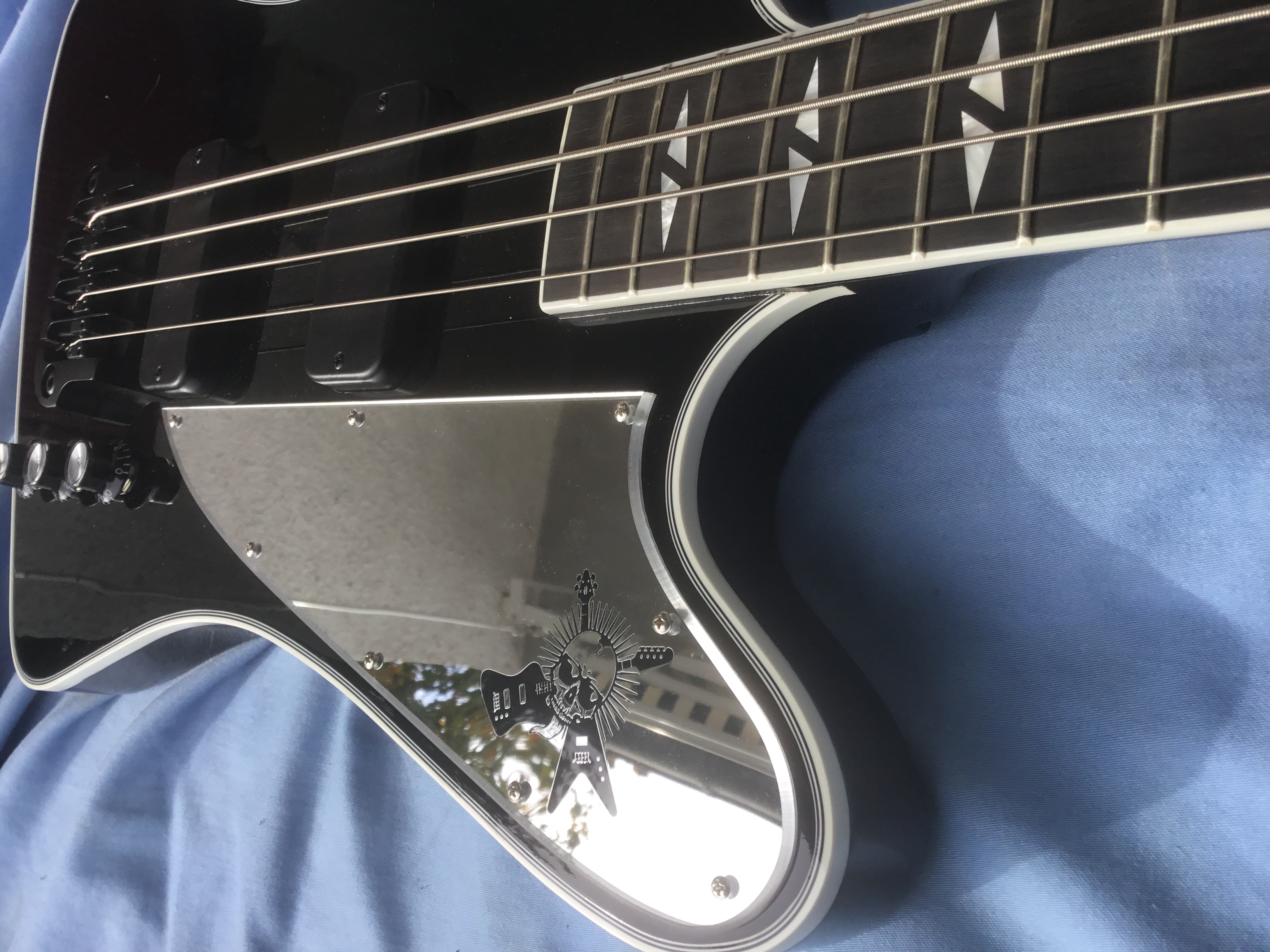 The guitar’s never been played. Good surprises were the signed pickguard by the band in 2015 ( Gene was late, so no Gene sig on this…), and the Gibraltar bridge (pics in the ad showed the Gotoh version).
