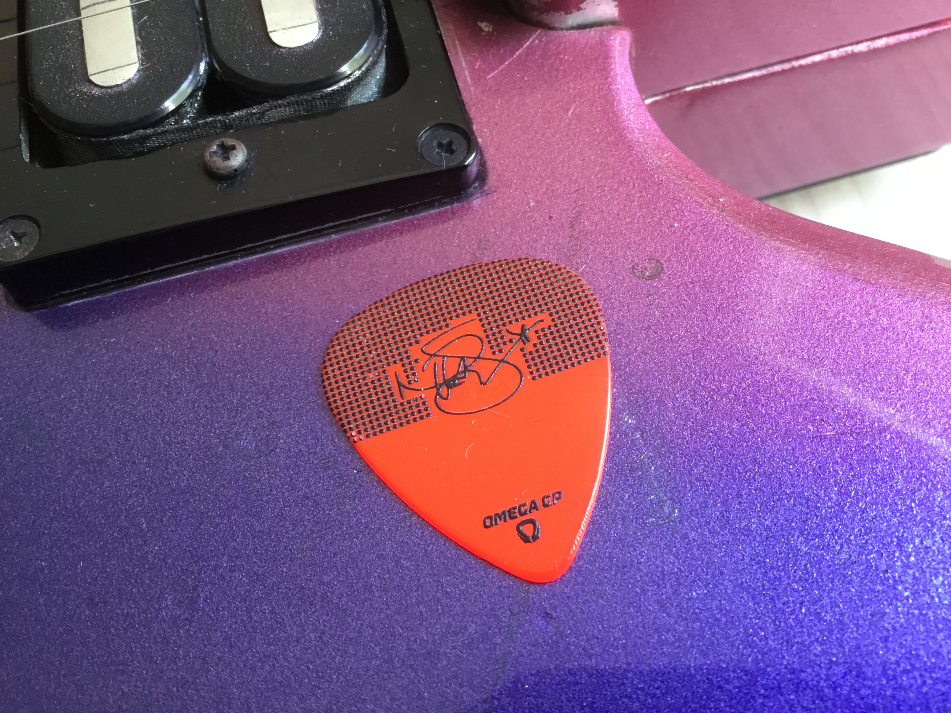 Lucky me, I got Nita Strauss’pick. Here it is, with a nitanesque Ibanez.