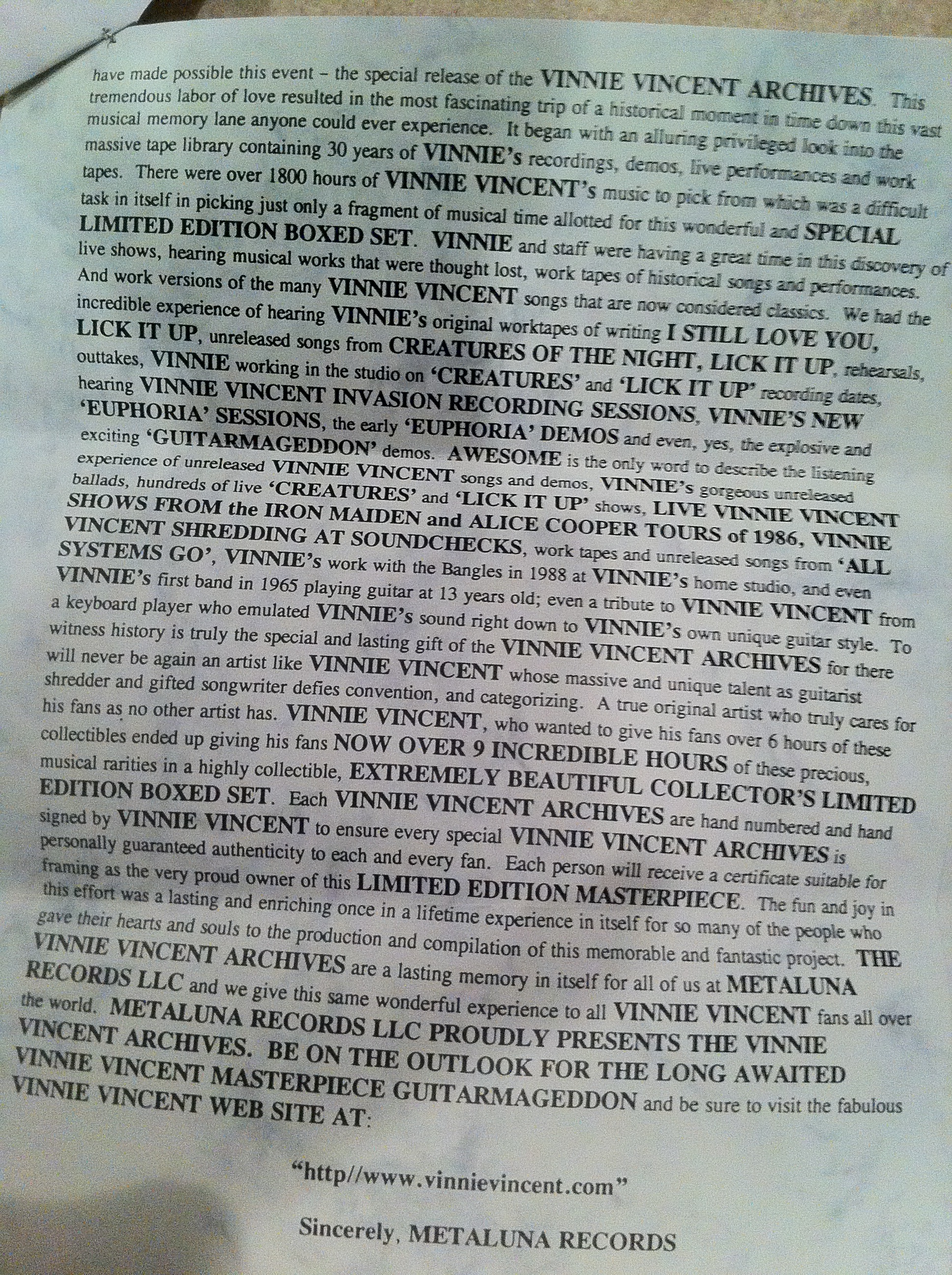 Re: Vinnie Vincent Boxset - I was ripped off by Vinnie!!!