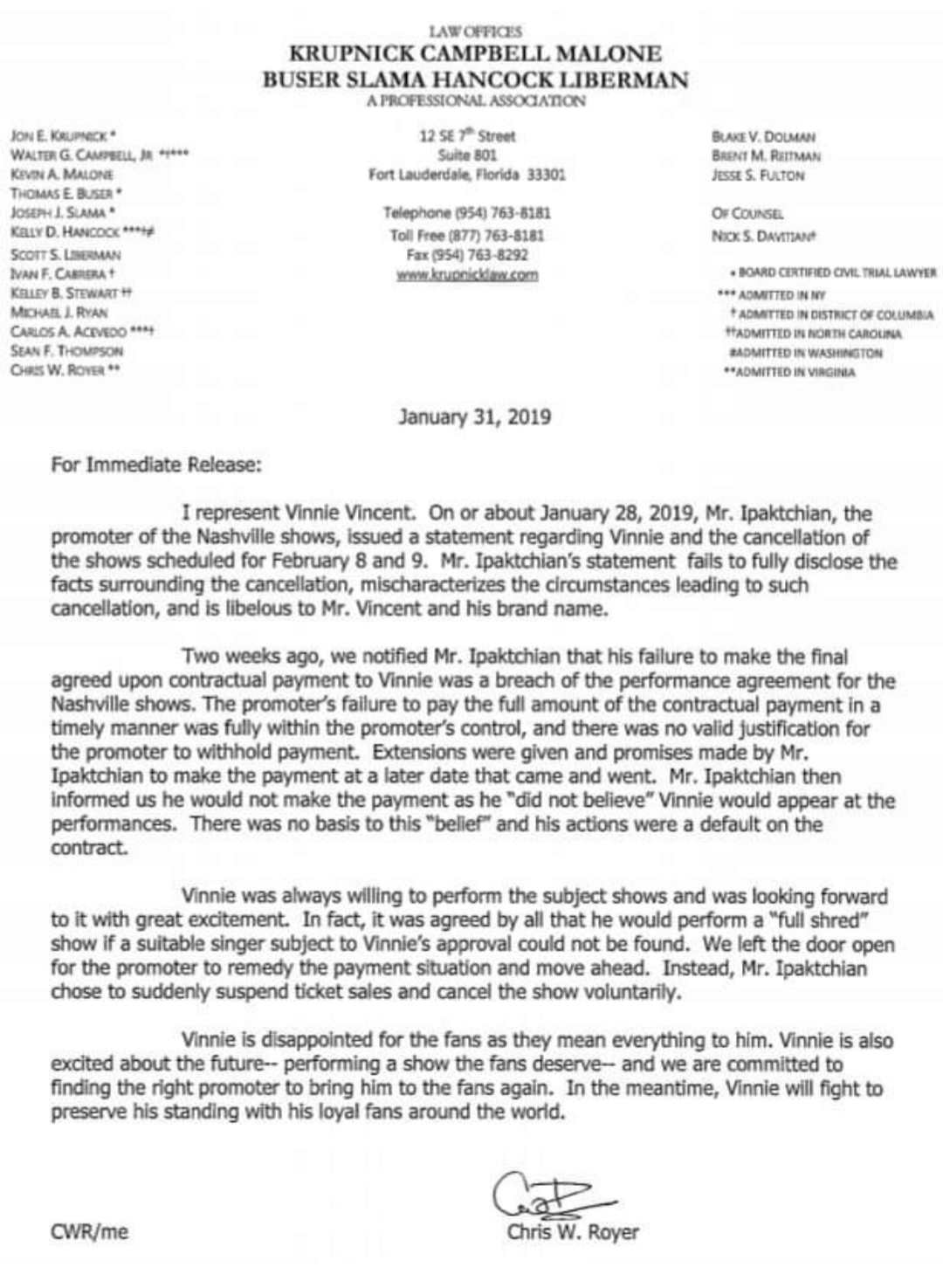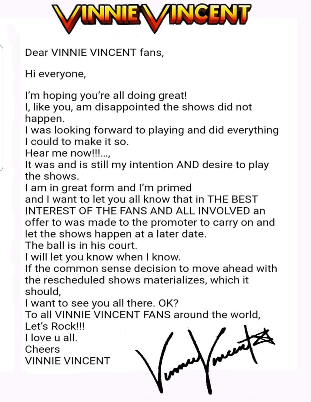 The guys at Full Shredd have to understand that there are KISS and Vinnie fans who aren’t members there but may have lost money on the cancellations, that they deserved to see this message.