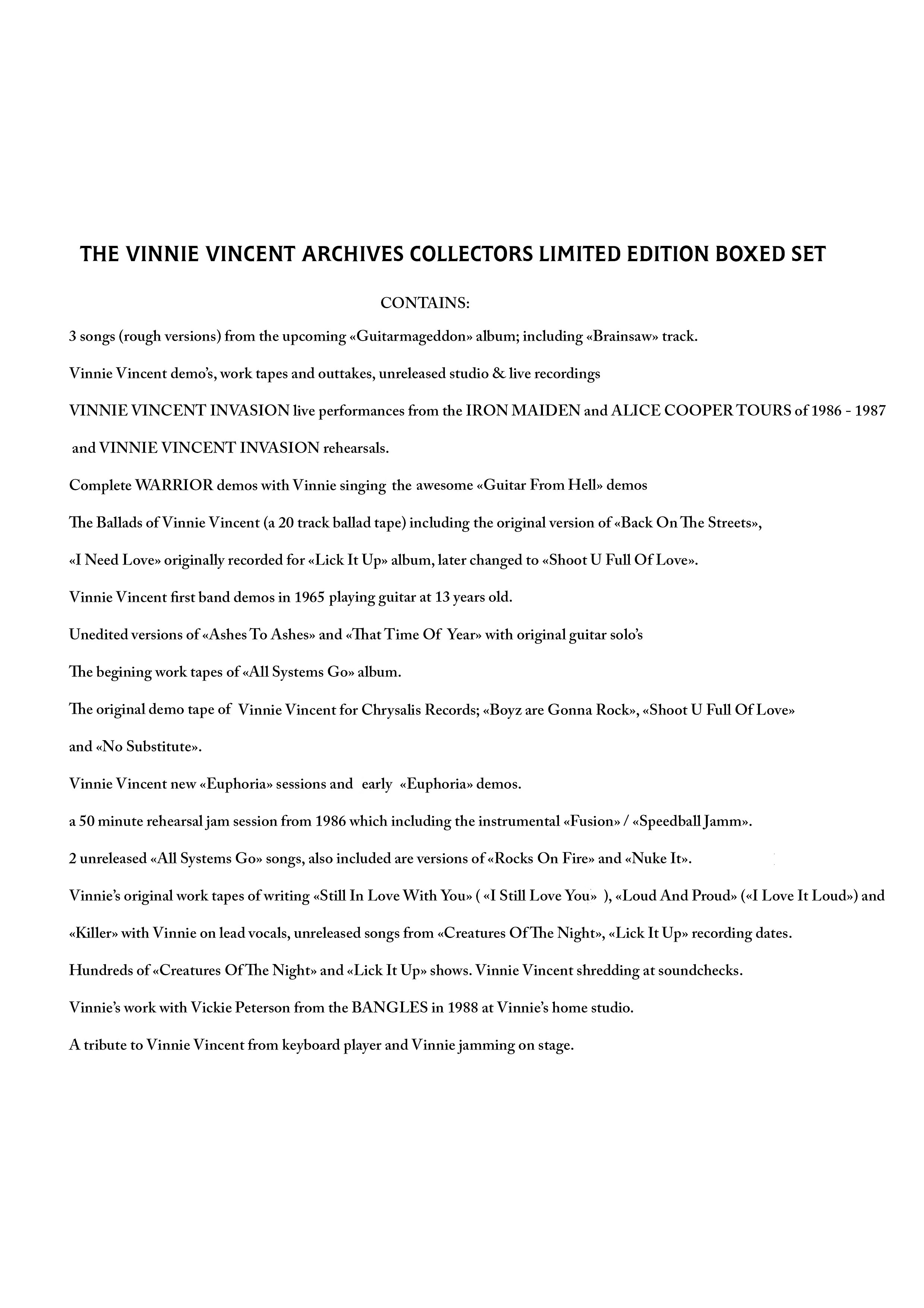 Vinnie might possibly play on "The Exorcism Of Kazcnyz". I read that he don't. Then I read that he does. Sorry about sounding sure, when I actually wasn't.toliklisiy wrote:I was looking for this single on eBay and other websites , and in addition 45 second sample , I do not find anything else . But I read on vinnie-vincent.com that Vinnie plays on "The Exorcism ..."