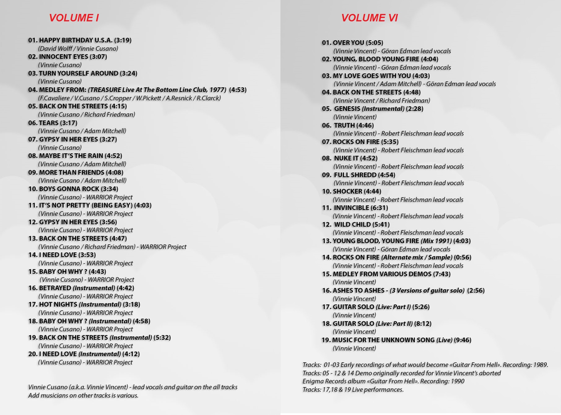 Somebody can send the full version "The Exorcism Of Kazcnyz" - Cashmir & LeCoux, (1976) or "Rocks On Fire" (Alternate mix), which here on a disc 6 a track #14 (sample) ??? Or maybe "This Song's For You Mama" (Demo sung by Vinnie) ?