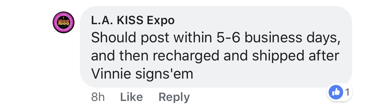 In the NYC KISS Expo with Peter we were promised a Q&A and when I got there I heard it was cancelled plus also it was for sure over 100 people that did the M&G and the line was horrible lol. I had to tell Derek I couldn’t wait any longer and I’ll come back Saturday (the day of the actual expo). Which I did and I was the first one to see Peter. But no Q&A sucked. This is why now for Vinnie they put a limit for 100 people (Wished they did that for NY)