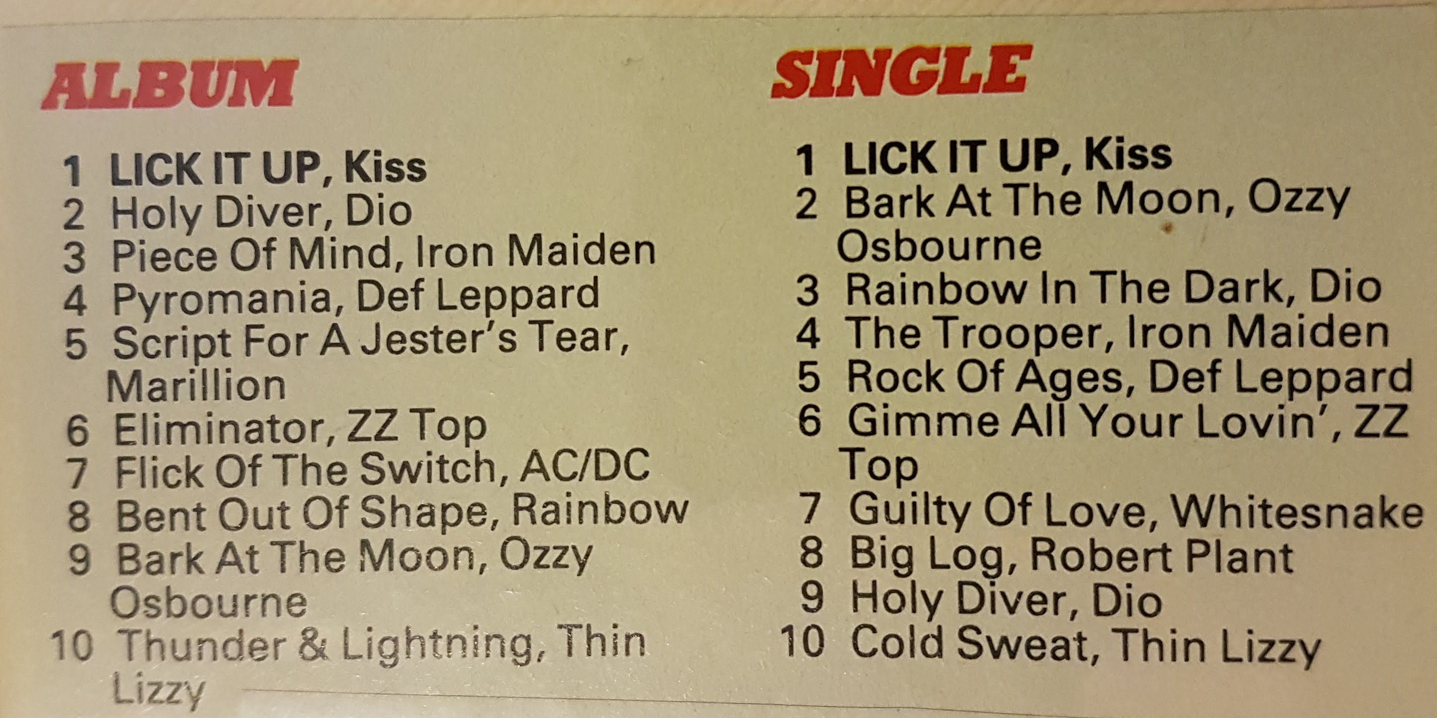 Kerrang charts and polls were totally fabricated. I knew a few people who worked there and my dad dealt with them. They just pushed what ever labels advertised. Including best guitarist poll etc. That said lick it up would have been number one metal record in UK at the time so I think this is correct.