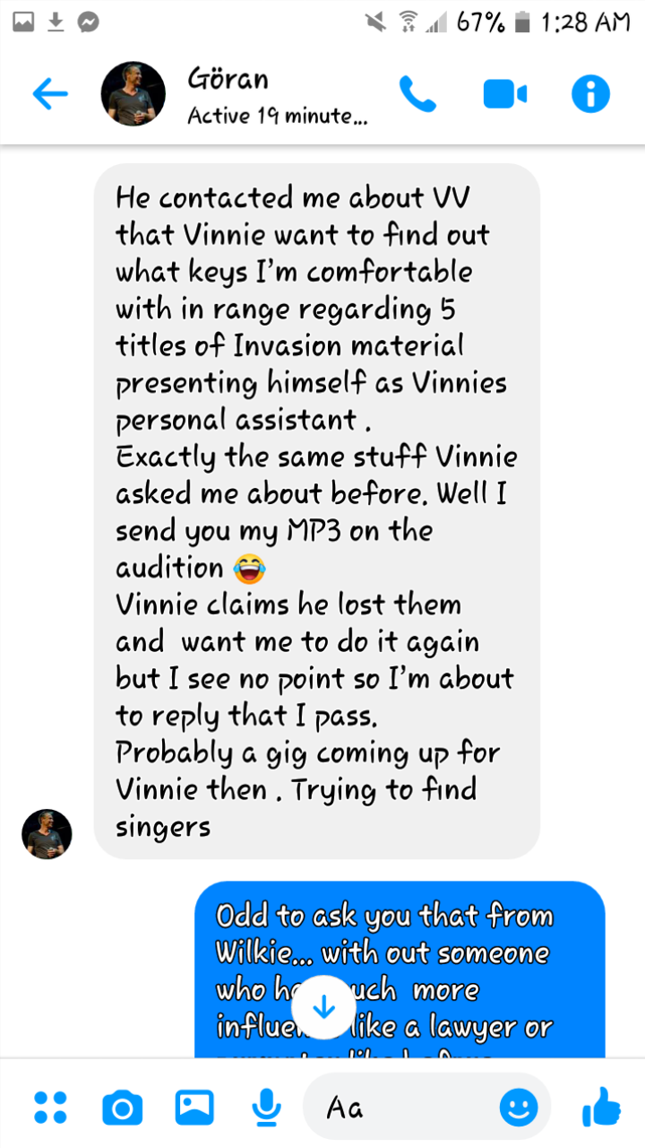 Here's a small part of something big I own that no one ever heard before ... I was also told that VV lost his copies of the Goran Edman Graceland auditions per Stephen Wilke' s attempt to gain them again...