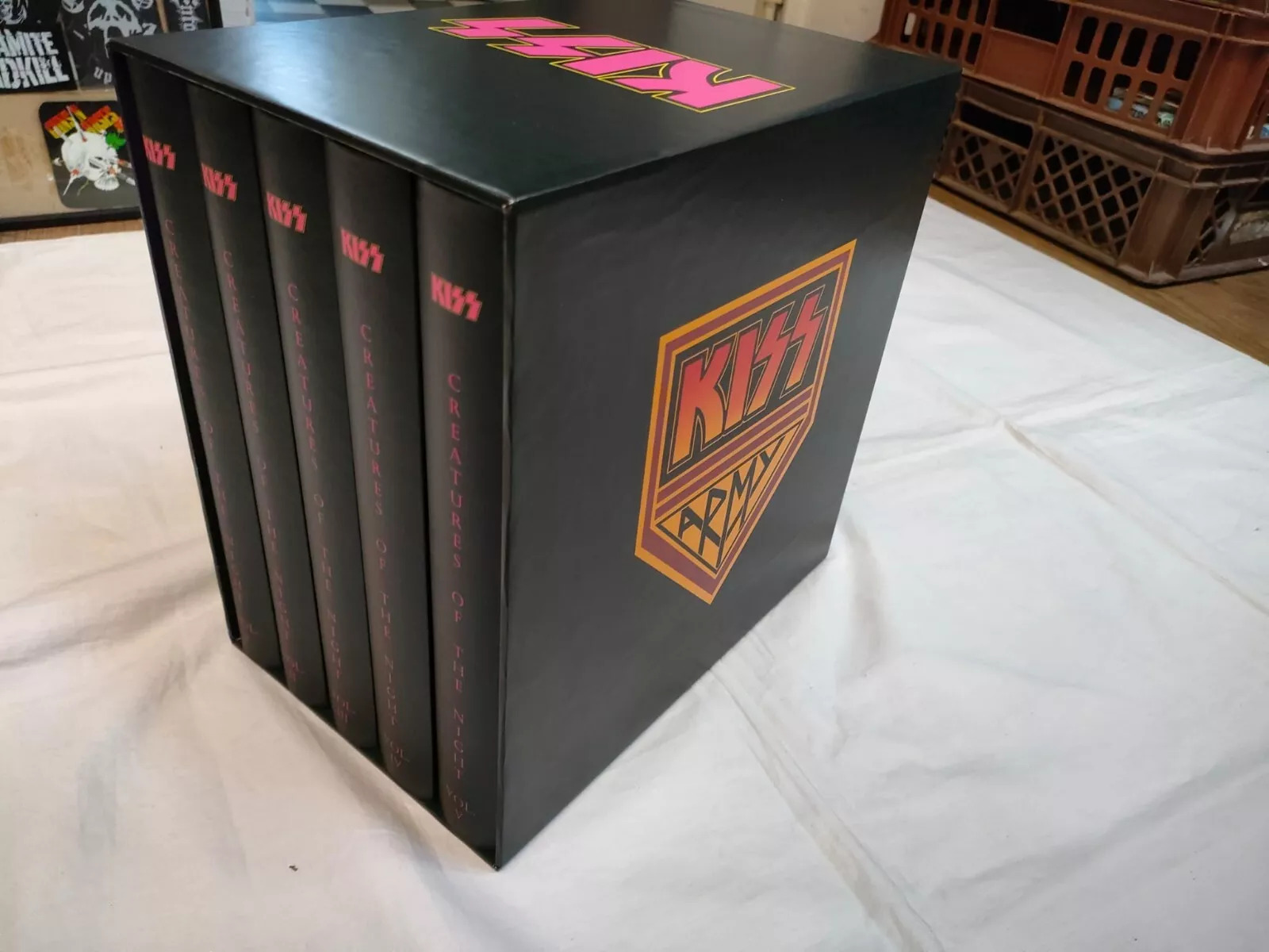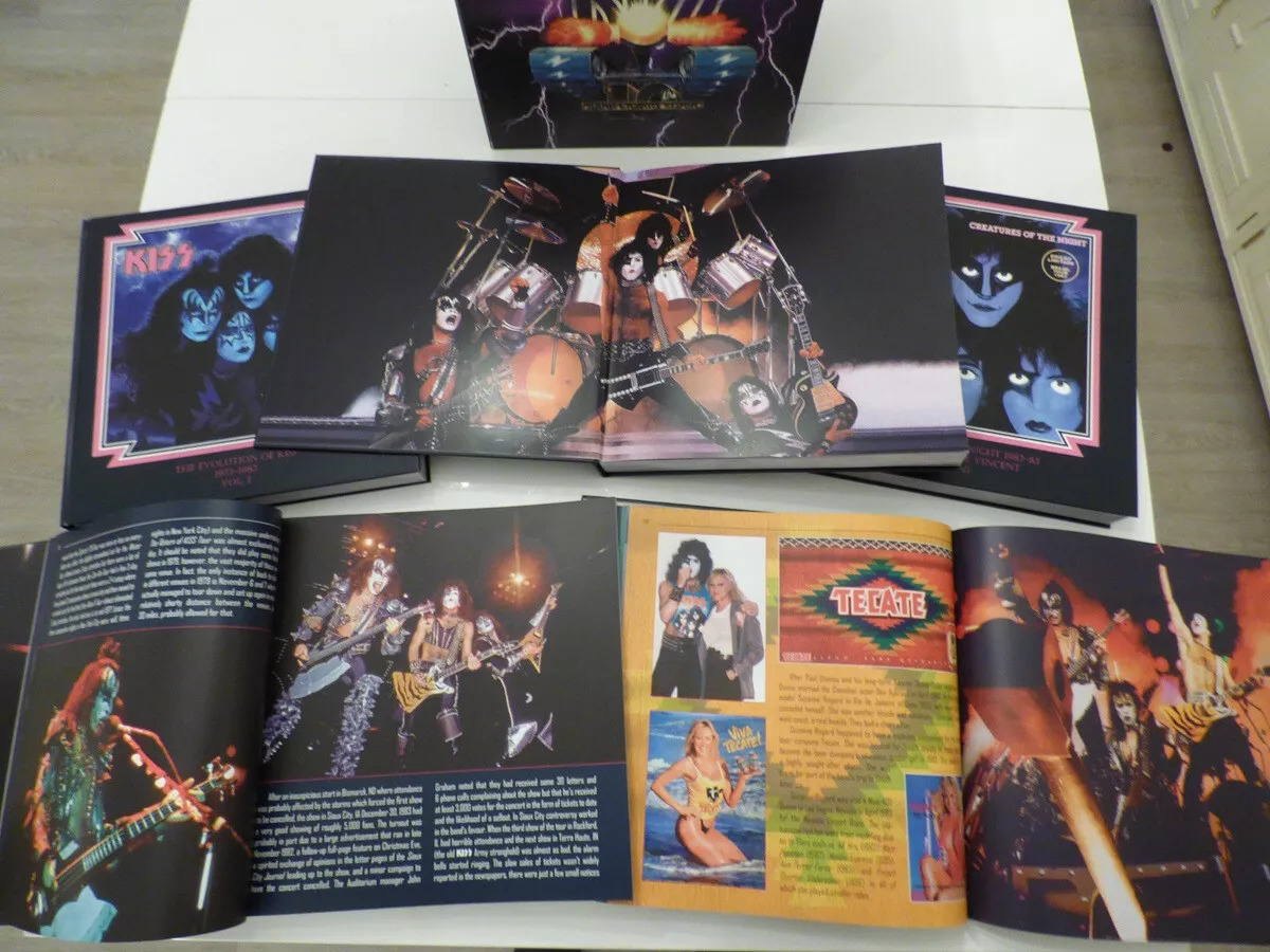 It weighs about 19kg and arrived today. Book one is about KISS from 1973 until Creatures and then it goes from there. Creatures with Ace. Creatures with Vinnie, the tour etc.