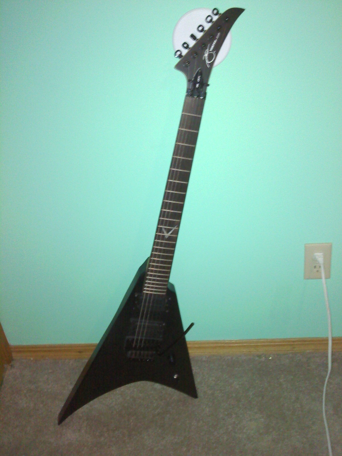 my black v is now finally finished...BUT the floyd i got for under $40 is a piece of shit, i have only played it for a couple hours, 3 strings popped at the same time, the 1st and 2nd strings cut into the floyd nut. you can clearly see and feel the lines. DO NOT get a floyd rose from guitarpartsonline.com, the necks are good, their floyds are shit, go to guitarfetish.com and get one of their floyds, or get a floyd rose special. once i fix my v i will post a video of me playing it.