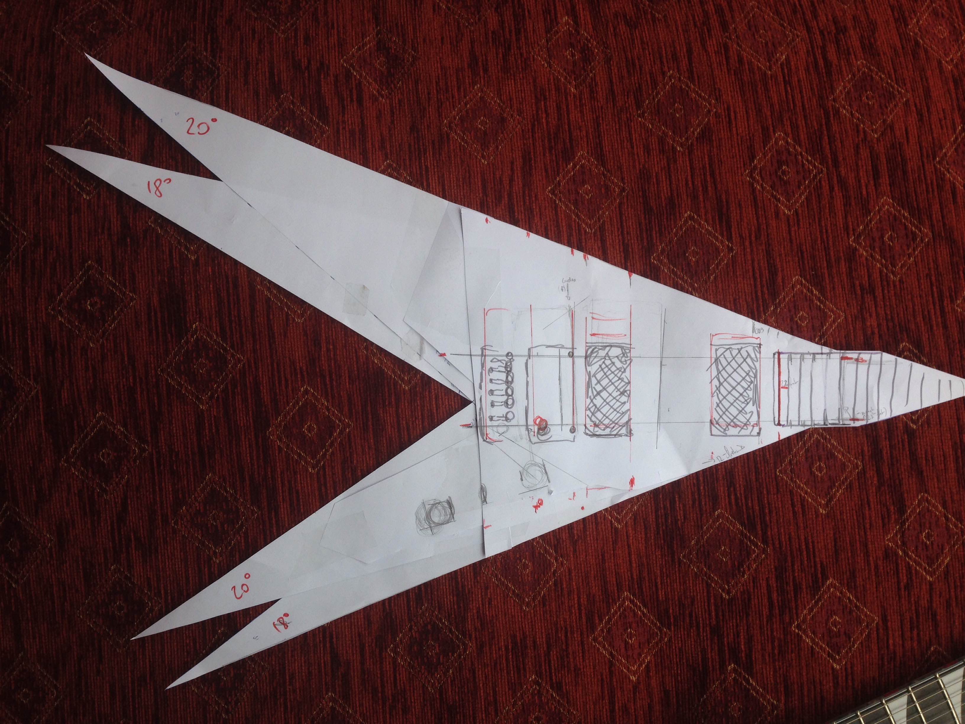 I checked and observed the pictures I found on the net. My Jackson RR pro helped me to do the first drawing too. I didn't think VV guitars were so big...