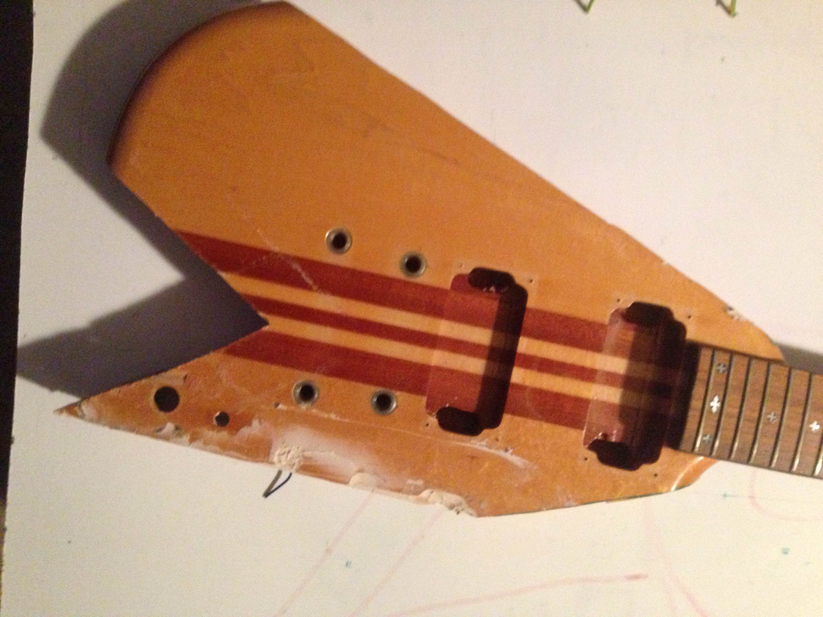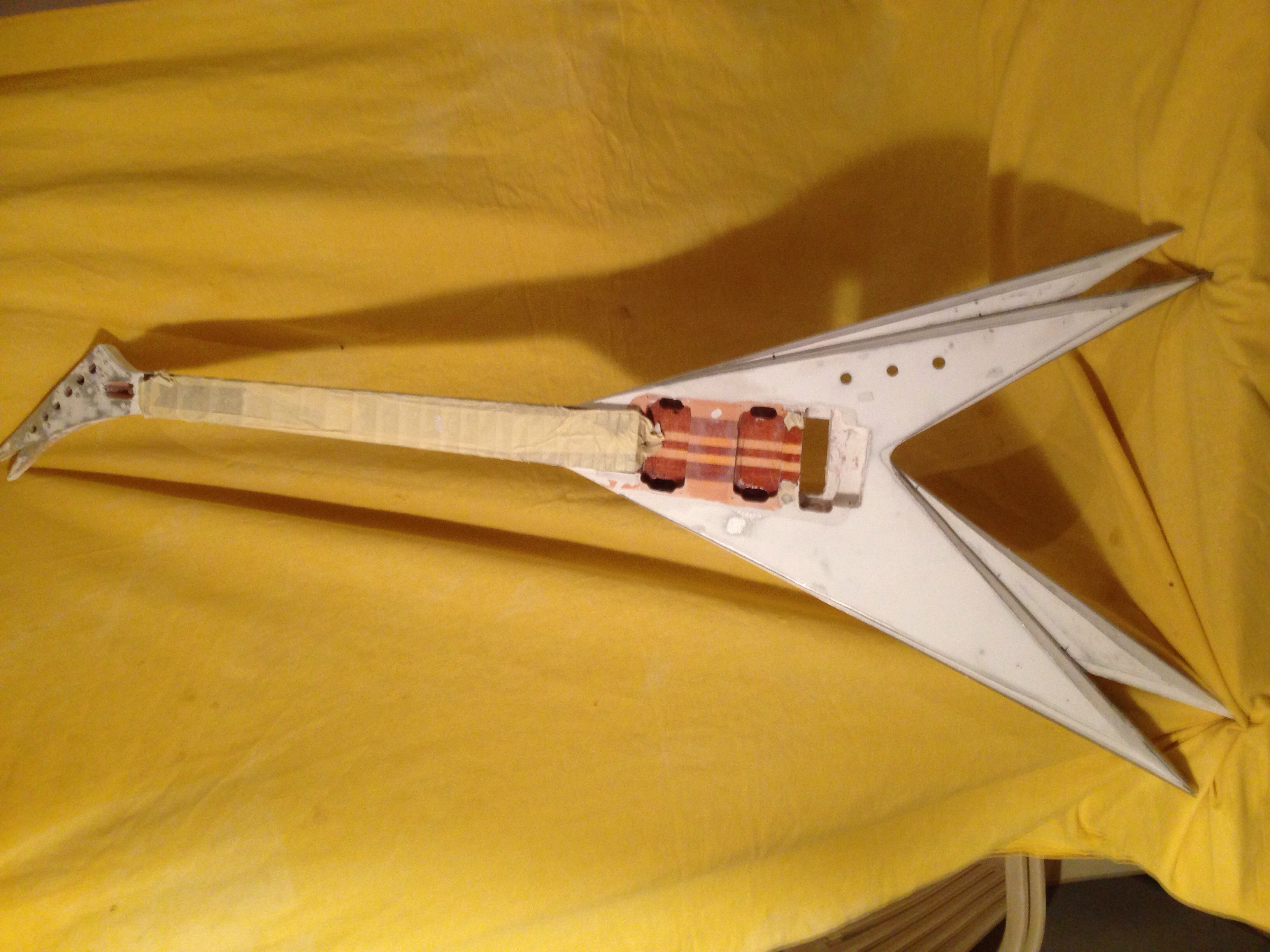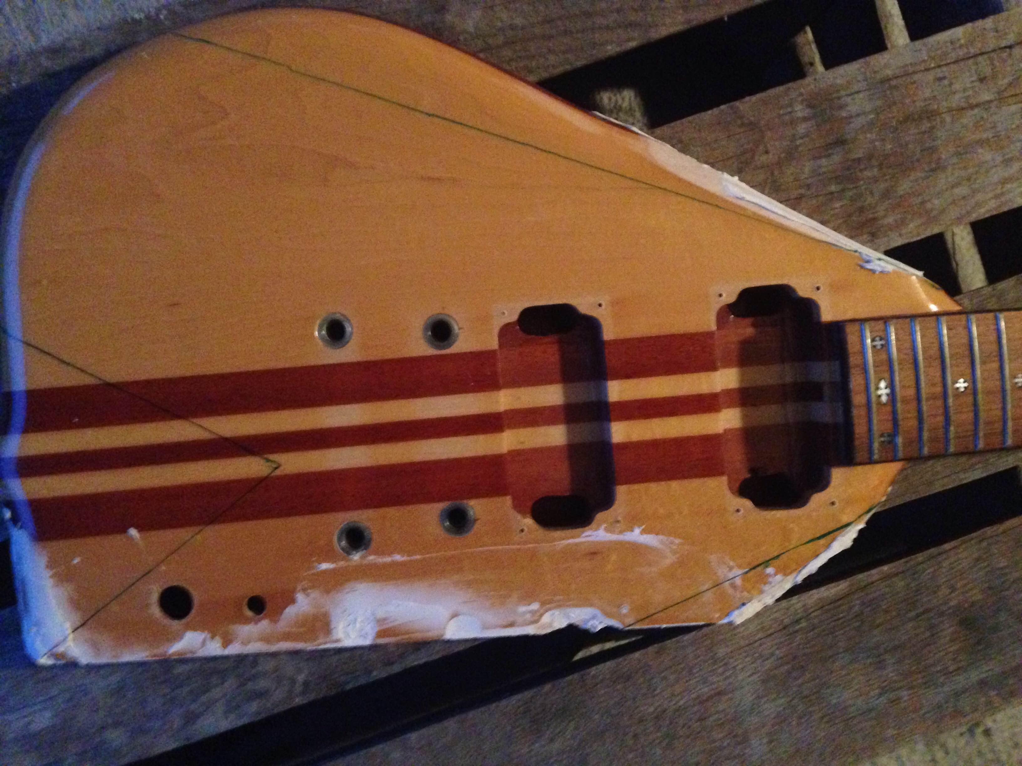 This is going to be fascinating to see what the finished product looks like and sounds like. This may be the first attempt known of a guitar modified into a Double V?