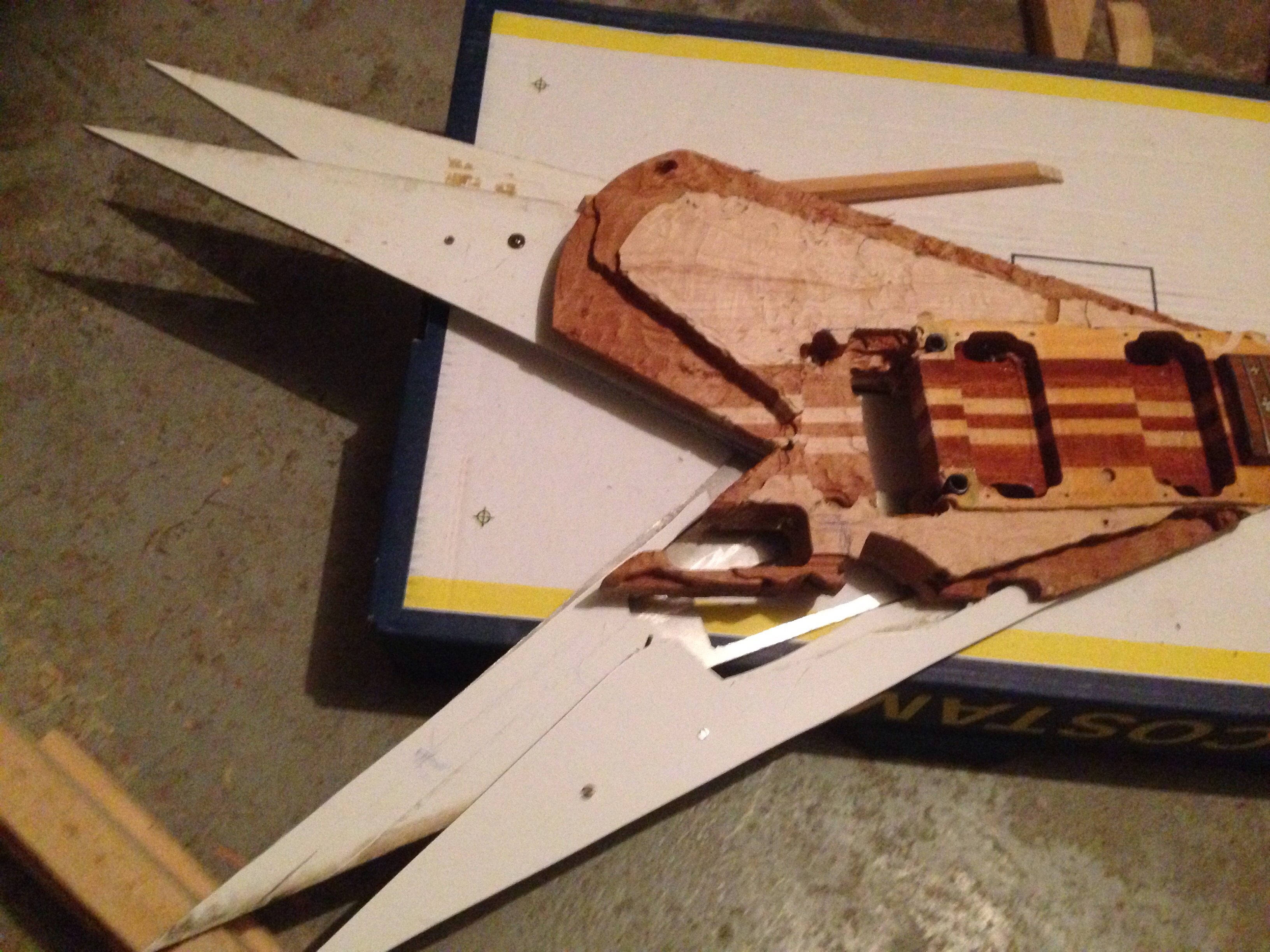 Hey, tukoztukoz. Before I ask this question, let me state what you have done is brilliant. But I'm just wondering. Wouldn't it been better to slice off the whole neck, as in you'd end up with a neck thru situation and then attach the wings instead of jigsaw puzzling the thing together.