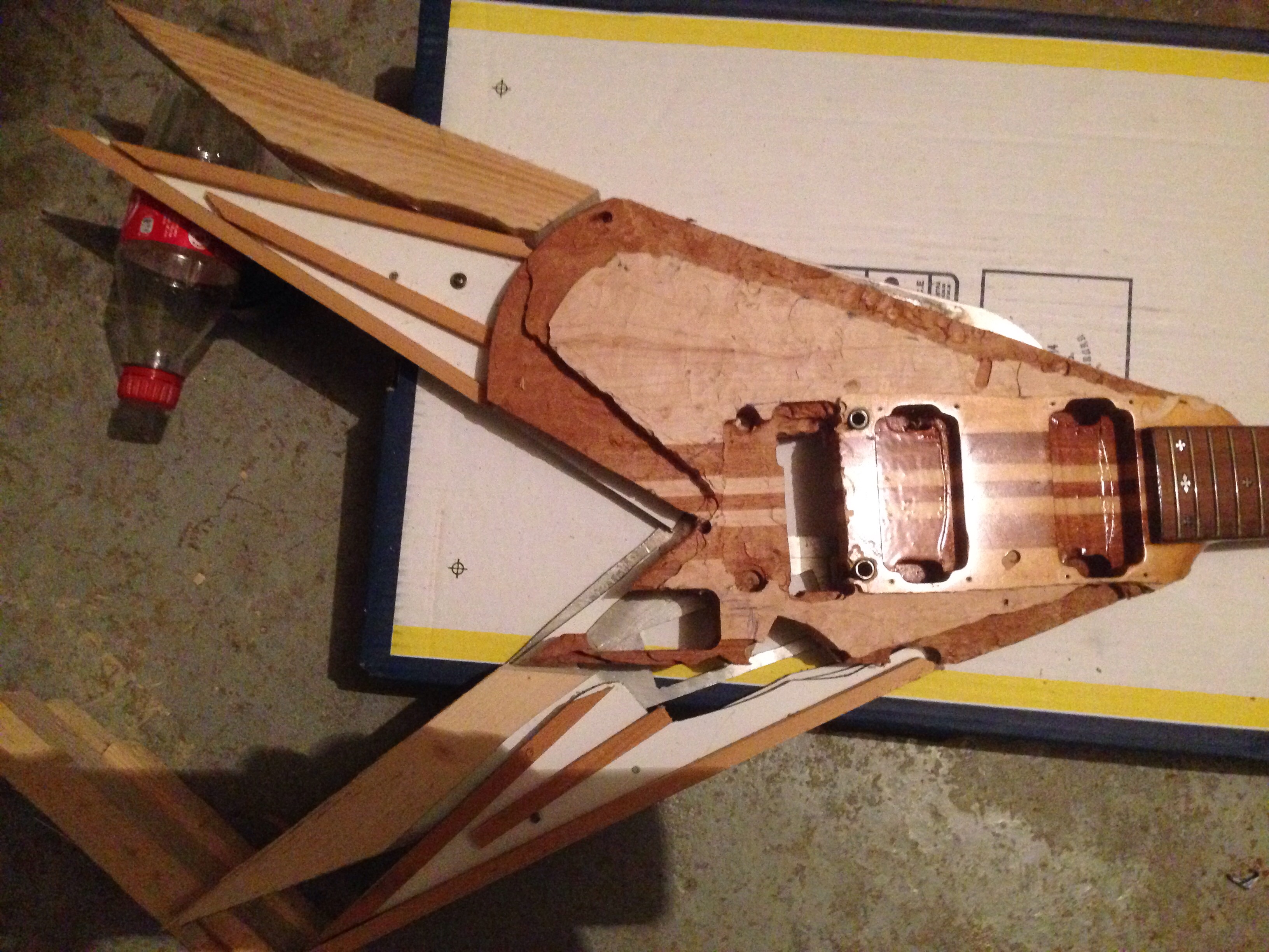metatron wrote:Hey, tukoztukoz. Before I ask this question, let me state what you have done is brilliant. But I'm just wondering. Wouldn't it been better to slice off the whole neck, as in you'd end up with a neck thru situation and then attach the wings instead of jigsaw puzzling the thing together.