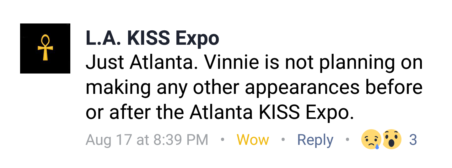 on Sept 1st, the official expo site says they will have a message from Vinnie, as well as some kind of video.