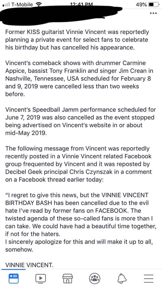 I prefer to wait for official statement, than your opinion. The post is already in other fb groups where Vinnie is. Posted by some people. So if this is fake, Vinnie will say it.