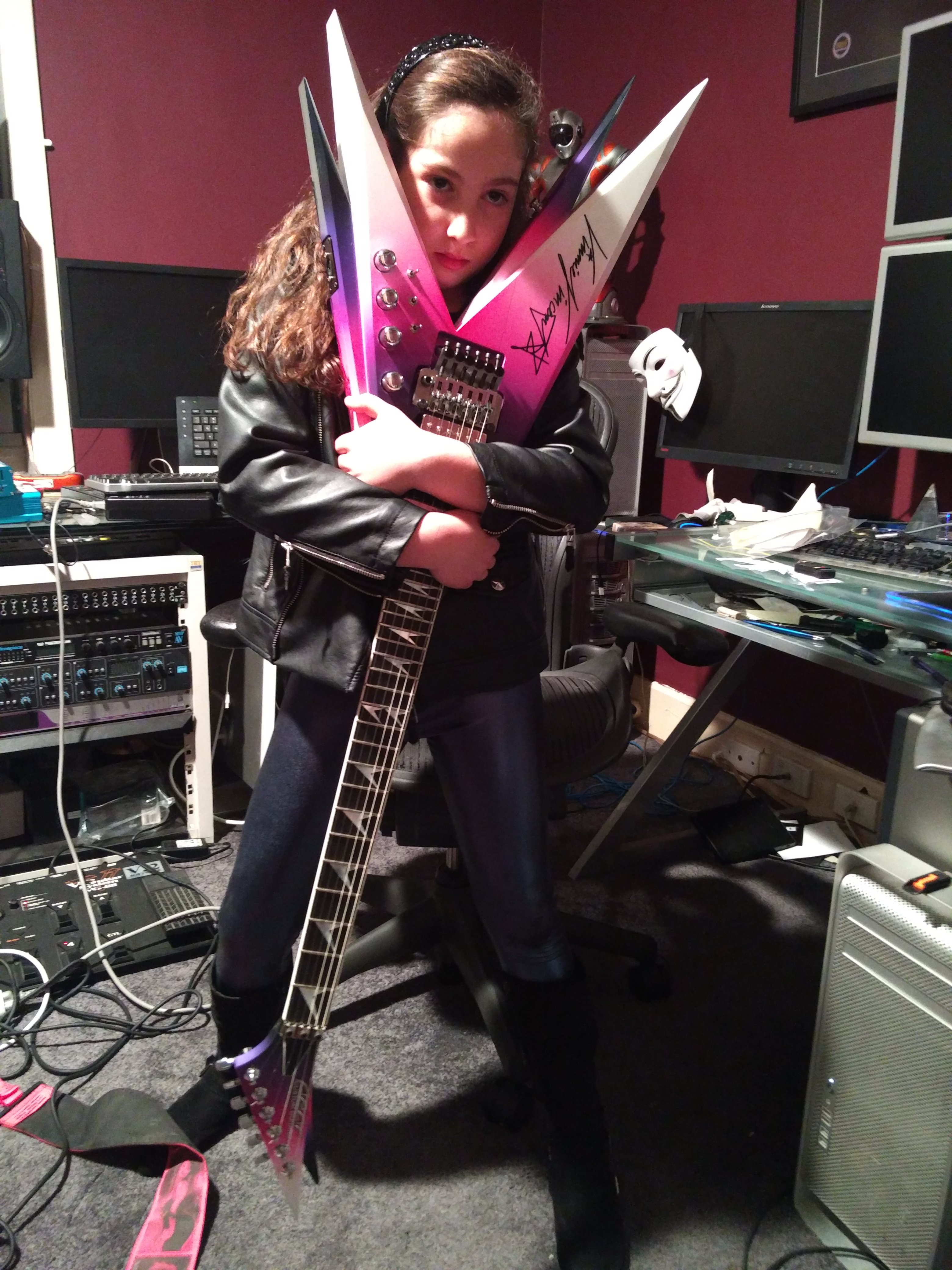 The gold flake on the Washburn is so....mmmmmmmm sweeeeet! The V inlays set it off nicely too. Shame the Laney/Washburn deal went south before the ASG tour. Would have been nice to see it on tour, rather than just in the That Time of Year video! I guess we wouldn't have the Carvin if it hadn't?