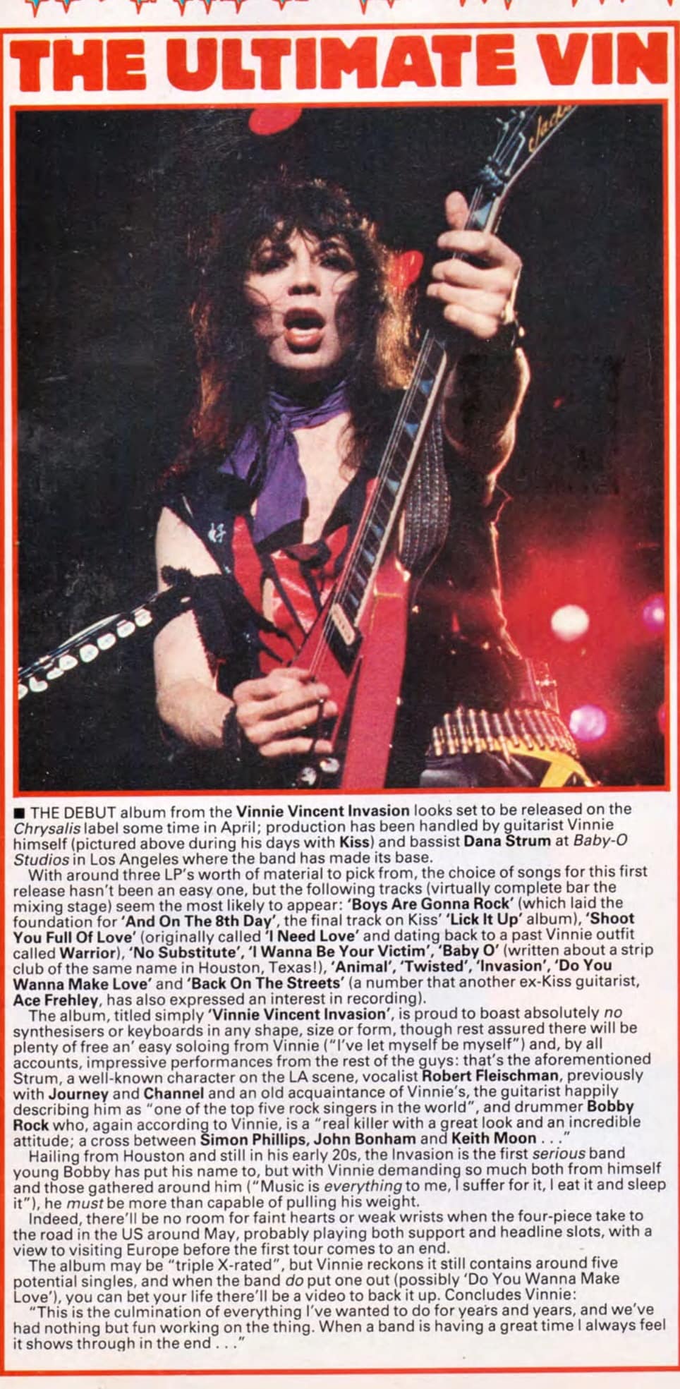 Some exciting news from the 80's about Vinnie's upcoming first Invasion album.