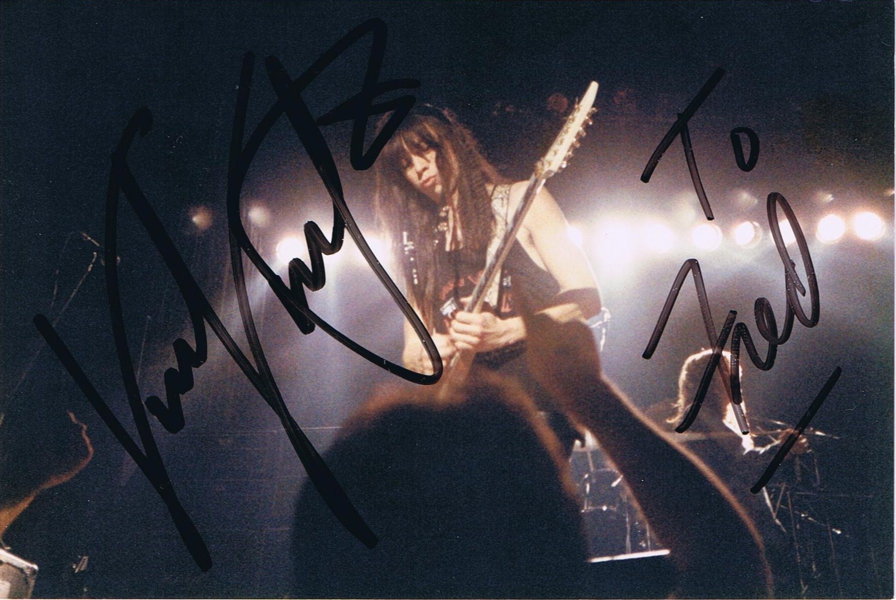 Interesting note about this photo and signature .......I sent it to him thru the mail, around the time the E.P/ Metaluna stuff first came about. I asked him if he would sign this along with 2 other's that I took of him. (1 from the A.S.G tour and 1 from the L.I.U tour with KISS ) He signed all 3. This one in particular